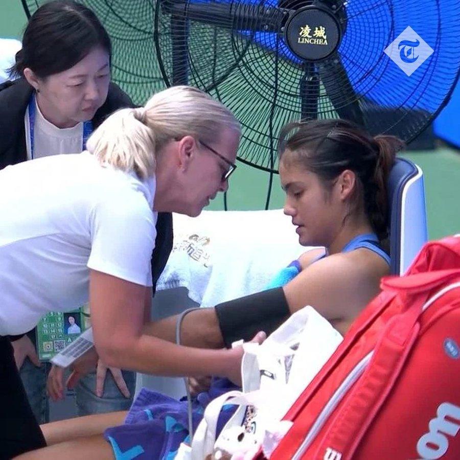 Emma Raducanu si fa misurare la pressione per il troppo caldo a Wuhan