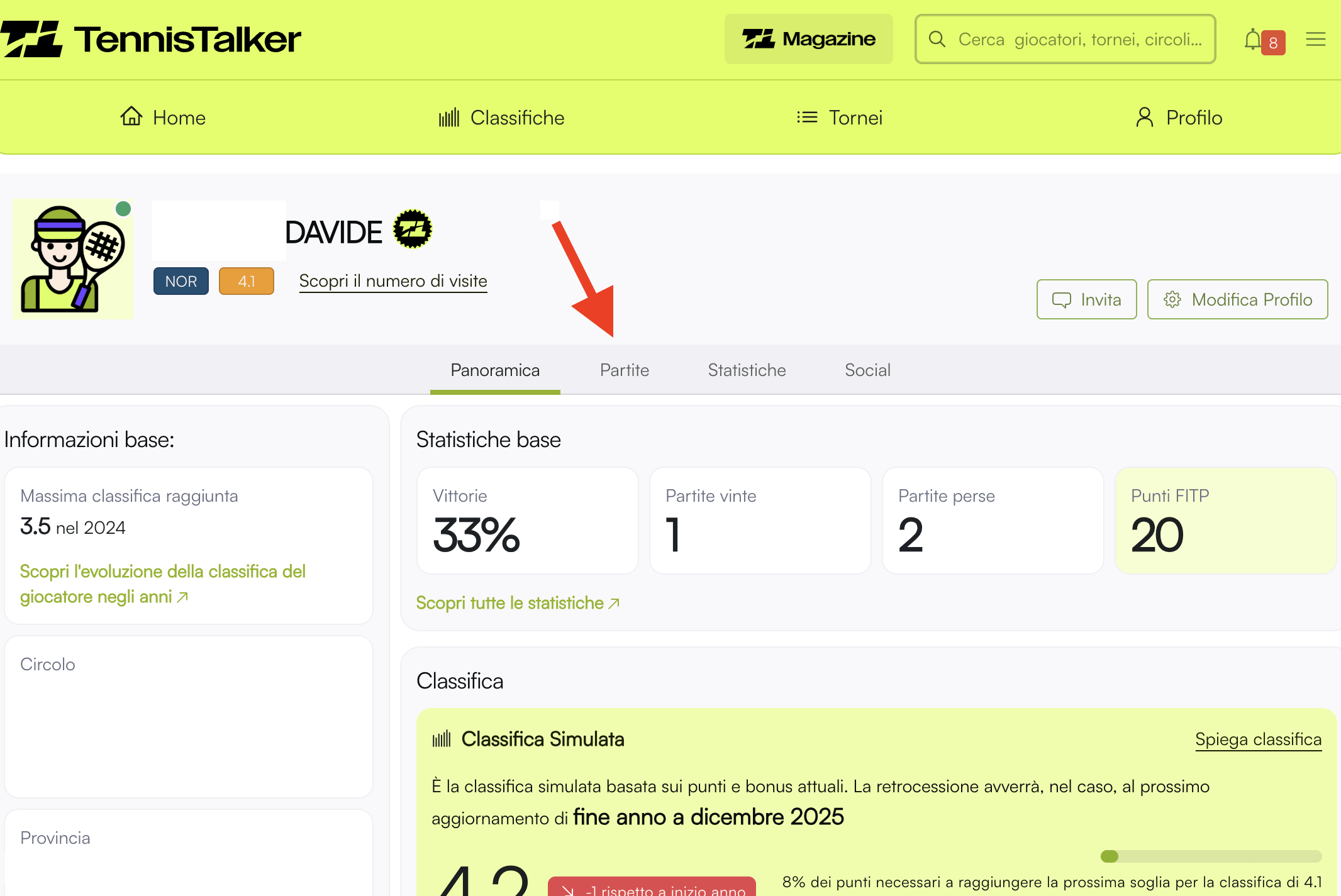 Su TennisTalker mostriamo i dati più recenti forniti dalla FITP, dunque sul tuo profilo le partite giocate post 2 novembre verranno conteggiate sulla base delle classifiche più recenti. In attesa dunque delle classifiche ufficiali di fine anno, il calcolo dei punti si baserà sulle classifiche UFFICIALI più recenti a disposizione.