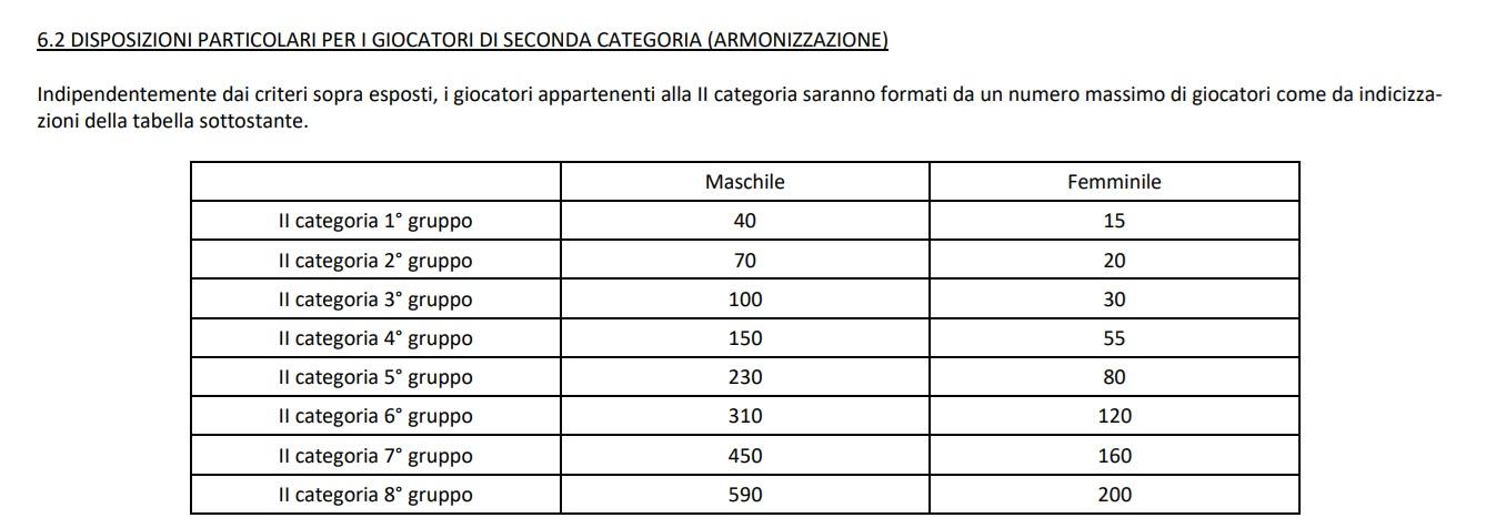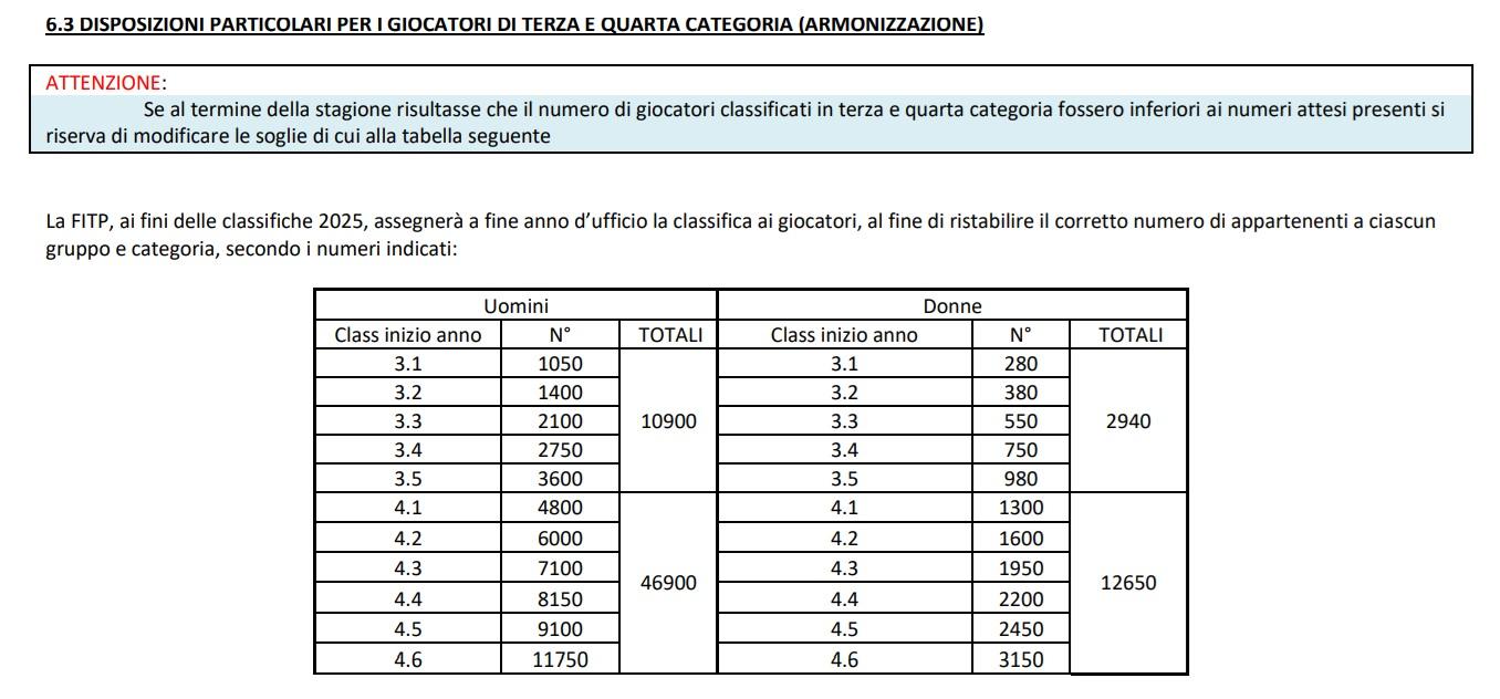 Nel metodo classifiche 2026 – quello ufficiale applicato per calcolare i punti dell’anno FITP 2025 – i numeri massimi per ogni fascia erano definiti come segue: